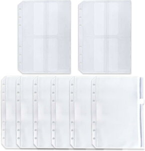 【システム手帳用リフィル】市販の6つ穴システム手帳に対応したリフィル。お得な10枚ファスナーポケットセットで、コスパ抜群です。仕様:A7、サイズ:13*8.8CM、6穴。 ご注意:お使いの手帳によっては...