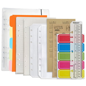 【お得なシステム手帳リフィルセット】パッケージ内容:6穴A5システム手帳バインダー×1+6穴A5手帳リフィル-横罫1冊×87枚+クリアカードポケット×1枚+クリアファスナーポケット×1枚+ブックマーク...