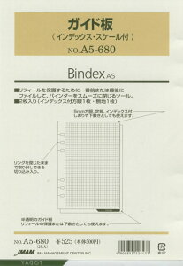 商品名 ・A5680 ガイド板(インデ・スケル付) 詳細 ・種類 :システム手帳リフィル ・品番 :a5680 ・サイズ :A5サイズ(6穴) ・メーカー名 :JMAM / 日本能率協会 ・・メーカー希望...