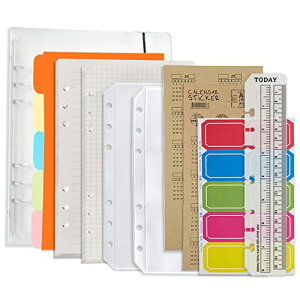 6穴A5システム手帳バインダーx1+6穴A5手帳リフィル-方眼1冊x45枚+6穴A5手帳リフィル-横罫1冊x45枚+クリアカードポケットx1枚+クリアファスナーポケットx1枚+カラーインデックスx5枚...