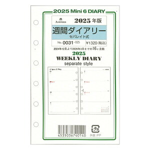 MINI6 ミニ6 月曜始まり 詳細 ・始まり年月 :2026 2025年 12月始まり ・種類 :システム手帳リフィル ・品番 :35036_1505-026 ・サイズ :ミニ6サイズ (6穴) ・メーカー名...