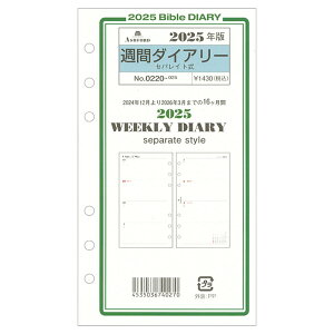 BIBLE バイブル 0220 詳細 ・始まり年月 :2025 2024年 12月始まり ・種類 :システム手帳リフィル ・サイズ :バイブルサイズ(6穴)