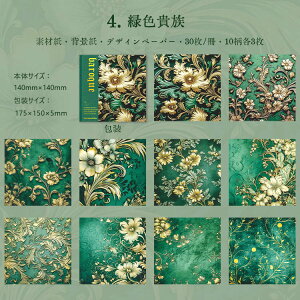 おしゃれなバロック模様の海外デザインペーパーセット コラージュ素材ペーパー、背景紙、便箋、メモパッド 正方形 大きめサイズ 縦140mm×横140mm 海外コラージュ素材は日本にはなかなかない