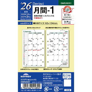 商品名レイメイ藤井 2026年 システム手帳 リフィル ダ・ヴィンチ 聖書 月間-2 見開き両面1ヵ月リスト式 説明見開き両面1ヶ月リスト式・16ヶ月分【サイズ】95×170×2mm【重量】22g【ペ...