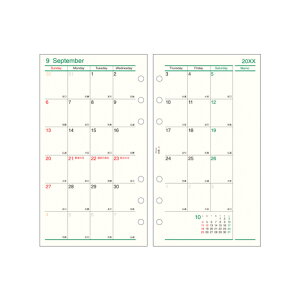 キーワードシリーズのシステム手帳用リフィル 【レイアウト】見開き両面1ヵ月ブロック式+見開き両面1週間:月間と週間のスケジュールを使い分けられるタイプ(216ページ 108枚) 【サイズ】A5【リフィルサイズ】148×210mm...