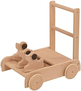 〜いぬが交互に跳ね上がり 押して進むとカタカタ楽しい音がします♪〜 ブナの美しい材質を肌で感じながら、 何十年も使い続けることができる日本製押車です! □ 仕様 □ サイズ:35×31.5×39.5 対象年齢:1歳〜...