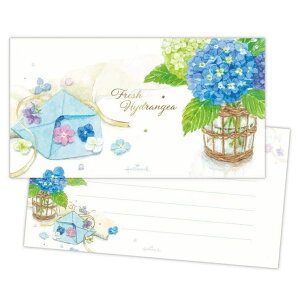 カワイイ手紙で大切な人に気持ちを届けよう文房具/メッセージ/プレゼント/ギフト/はがき箋初夏の繊細な風景を切り取りましたこちらは夏がモチーフの罫線なし[ハガキ箋]あじさいの色の移り変わりを貼り絵で繊細に表現しました梅雨の合間