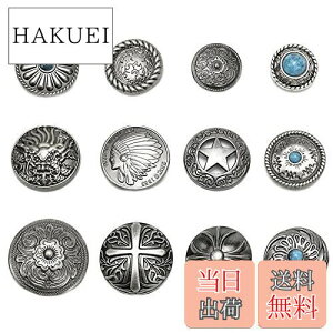 商品情報商品の説明コンチョボタン(フェザー、ワイルドハーツ、ウエスタンフラワー)の12個セットです。留め具としてネジを付属します。材質:合金 コンチョのサイズ:直径約30mm カラー:シルバー仕上げ(ターコイズブルー・コ