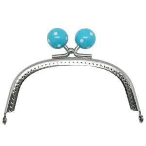 玉付き口金 クシ型 穴あきタイプ ニッケル 3.3寸(10cm) 水色×白ドット オリジナルポーチやがまぐち作りに♪ あめ玉みたいにカラフルな『玉付き口金』。 開けるのが楽しくなる、ころんと可愛い大きな丸玉がついた口金です...