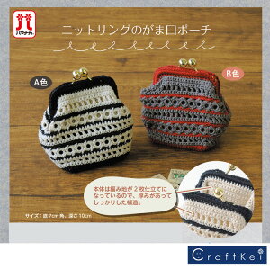 商品名 ハマナカ ニットリングのがま口ポーチ キット内容 ウオッシュコットン《クロッシェ》 ニットリング 編みつける口金 編み図 出来上がりサイズ 底:7cm角、深さ:10cm 用意するもの ...