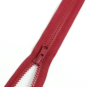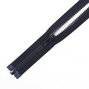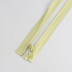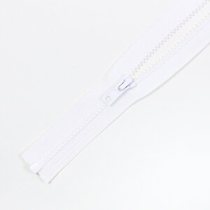 オープンタイプのファスナーです。 ファスナーを開ききると左右が離れる仕様なので、ウエアの前開きなどにお使いいただけます。 ビスロンファスナーなので、ムシの部分はプラスチックのようなタイプです。 樹脂製のため、同サイズの金