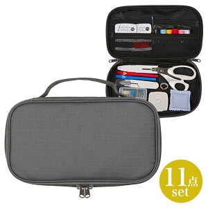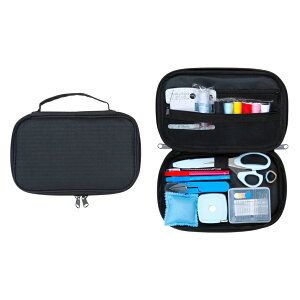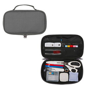 【 サイズ(約) 】 250×165×55mm(ケース/ハンドル含まず) 【 材質 】 ポリエステル100%(生地、中スポンジ)、PVCレザー(ハンドル) 【 セット内容 】 ステンレス裁ちはさみ(17cm)、糸切りはさみ、自動巻メジ...