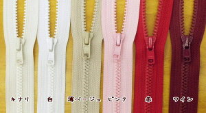 +++++++++++++++++++++++ 全30色揃ったYKKファスナー 『ビスロンオープンファスナー』です。 金属ファスナーに比べて、軽くて樹脂部分のカラー バリエーションが豊富なのが特徴です...