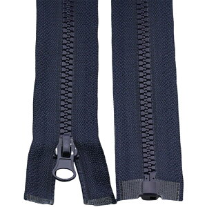 オープンタイプのファスナーです。 ファスナーを開ききると左右が離れる仕様なので、ウエアの前開きなどにお使いいただけます。 ビスロンファスナーなので、ムシの部分はプラスチックのようなタイプです。 樹脂製のため、同サイズの金