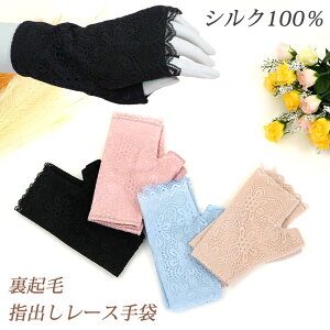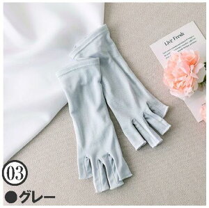 シルク100%の指先なし手袋は、紫外線予防と乾燥対策に最適です。指先がカットされているため、装着したままスマートフォンの操作が可能です。長さ約21cmで、アイボリー、ピンク、グレーの3色から選べます。シルクの柔らかさが手肌を優