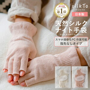 素材シルク80%・ナイロン18%・レーヨン2% ポイント 素朴な風合いのシルクをつかったナイト手袋【指先なし】。 就寝中に手を温め、乾燥から護りま