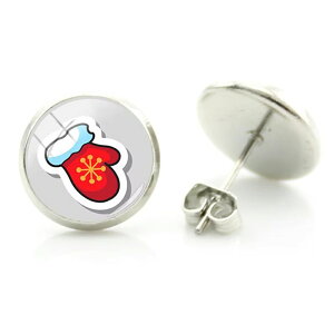 赤い手袋をデザインしたカボションをスタッドピアスにセットしたオシャレなファッションピアス。 クリスマスイベントや12月にオススメのカボーションピアス。 シンプルな丸台座に個性的なデザインのファッションピアスは男性からも女性