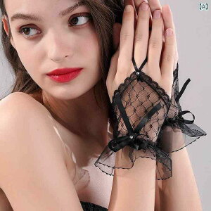 レース 手袋 黒 ウェディング ドレス 指なし ショート 夏 メッシュ 韓国 レトロ 花嫁 結婚式 披露宴 2次会 アクセサリー リボン レディース レディース手袋のスタイル: ショート手袋