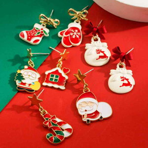 ・素材: 合金・形状: 蝶結び・加工: 焼付塗装・柄: 小鹿、杖、手袋、家、クリスマスギフトボックス、サンタクロース・スタイル: 欧米風・スタイルカテゴリ: ファッション通勤・カテゴリ: イヤリング・対象:...
