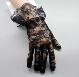 ウェディングや二次会やパーティー、カラードレスやワンピと合わせるも良し☆ レースフリル×ショート丈で、エレガント&Coolなスタイルを演出♪ ストレッチも良〜〜〜くきいて指先まで綺麗に見え、Clubシーンやダンスイベント、ステージ衣