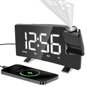 【多機能デジタル時計おしゃれな投影時計】:通常の目覚まし時計の機能に加え、FMラジオ、自動調光、USBポートとしても使用できる多機能クロック。湾曲したスクリーンが目の曲率を模倣し、より快適な視聴体験を提供します...