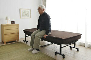 シニア世代にも優しいハイタイプ!リクライニング機能つきの折りたたみベッドです。従来のベッドの高さより、床面までの高さを高くしたことで、スムーズに乗り降りできます。取り付け位置を選べる、山型サイドグリップを採用...