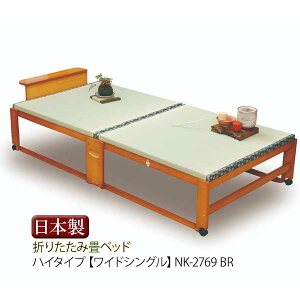 折りたたみベッド畳 ハイタイプ シングル[棚付き] NK-2768 ■サイズ:幅約94.5×長さ213×高さ53cm・重さ:30kg ■カラー:ブラウン ■製 造:日本 ...