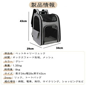 ドライブ、キャンピング、通院、災害避難などのお出かける時に非常に役に立ちますの犬用猫用キャリーバッグ、リュックです! 【疲れにくい構造】製品の背面と肩紐部分はクッションとメッシュが入っていて蒸れも防いでくれ...