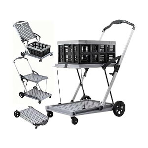 いろいろ荷物をラクに運べる、様々なシーンで使える軽量台車。今まで重くて大変だった荷物の運搬がラクラクになります。折りたためば平台車としても使用可能。