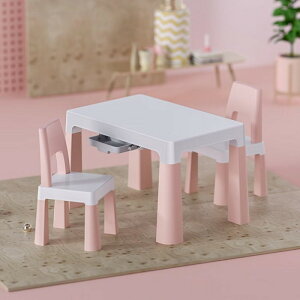 【子ども用テーブル&チェア 3点セット】 お子さまの学習・お絵かき・食事・遊びなど、 日常のさまざまなシーンに対応できる実用的なデスク&チェアセットです。 ? 【多機能収納付きデザイン】 テーブルの下には引き出しが2つ付いており