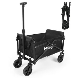 【大容量&驚くほどコンパクト収納&軽量化】キャリーワゴンは防錆スプレー処理を施した厚めの炭素鋼製で、頑丈で耐久性があり、耐荷重が強く、様々な複雑な地形に対応しやすい。溶接部はロボットによる精密溶接で、変形や破損のない
