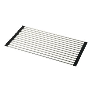 シンクに渡して水を切ることができるラックです。本体はステンレス製で錆びにくいため水まわりに適します。伸縮させることができ、シンクの幅に合わせて調節できます。フチはシリコン製のため滑りにくくシンクのフチにフィットします