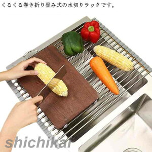 水切りラック シンク上 くるくる巻ける 調理台拡張にも 折りた
