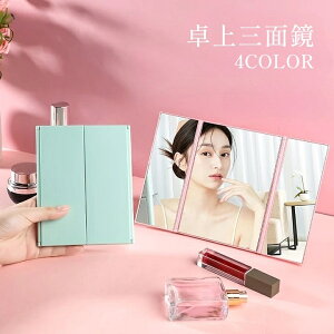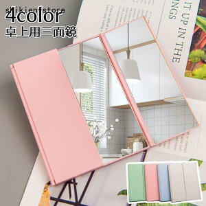 スタンド付きで使いやすい♪ シンプルな卓上用三面鏡です。 使わない時は折り畳んで収納出来て省スペース◎ 【サイズについて】 画像をご参照ください。 【カラーについて】 生産ロットにより柄の出方や色の濃淡が異なる場合がございま