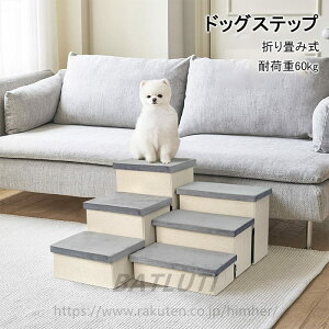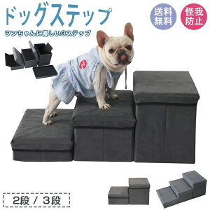 折りたたみ可能!小型犬・老犬・子猫ちゃんたちのためのステップ。ソファやベッドの登り降りを助けてくれるドッグステップです。ステップ下の3ヶ所は収納スペースです。ペット用の小物などの収納が可能です。ステップ部の生地は柔らか