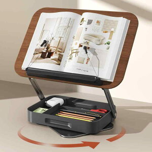 【送料無料】ブックスタンド 書見台 読書台 360度回転式台座 無階段高さ調節 折りたたみ式 鉄製台座 安定性抜群 持ち運びやすい ページ捲り簡単 木目 ダークウッド おしゃれブランド色ダークウッドモ...