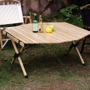 メイン素材:木、アルミニウム【サイズ】約展開サイズ:約90×90×44(cm)【天然木を採用】八角形ロールテーブルはアルミ合金製のテーブルとは異なり、よりやさしいブナ材をコア素材として使用しています。木の質感がはっきりして均一で、