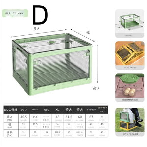 「上に蓋&前面の扉は両開き式」 折り畳みコンテナは2つの開き方が可能です。上部の蓋を開ける方法と、前面扉から開ける方法があります。上部の蓋には大きなものでも気軽に入れたり出したりすることが便利です。前面扉にはしっかりしたマグネット設計...