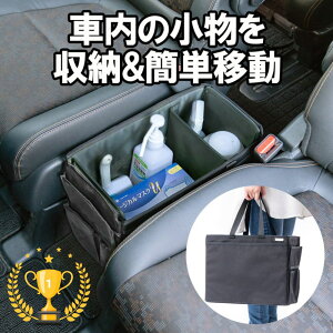 車内の小物をすっきり収納できるウォークスルーボックス。たっぷりと収納でき、取っ手付きで持ち運びにも便利なコンソールボックス。コンパクトに折りたたんで収納することができる車用ボックス。<特長>●車内の小物をすっきり収納