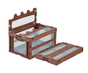 容量50リットルでクリアカラーの折りたたみコンテナ。使わないときはコンパクトに折りたたみ収納できる。内側の4つのロックキーで誤って折りたたむことを防止します。ふたにも2つのロックキーがあります。シボ加工されており貼ったラベルやテープを...