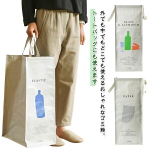 外でも中でもどこでも使えるおしゃれなゴミ箱。トートバッグにも使えます。持ち運びに便利なハンドルと、3つを連結して使用することのできる外側スナップボタン付き。ペットボトルや空き缶の分別、色物仕分けや家族別のランドリーバッ
