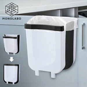 キッチンのキャビネットの扉などに取る付けられるゴミ箱です。引っかけるだけなので傷もつけず移動も簡単。ワンタッチで折り畳みができるので、使わないときはコンパクト、スペースを有効に使えます。ゴミ袋を止められるホルダー付き