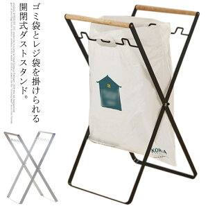 X字型のフレームを広げて、凸凹部分にレジ袋を掛けるだけでゴミ入れになる便利アイテムです。複数掛ければ分別もラクラク。エコバッグやトートバッグを掛ければ、ランドスなど様々な用途にアレンジできます。折り畳むと厚さ3.5cm!持ち