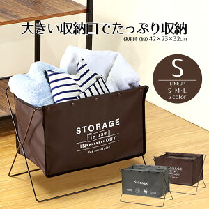 大きい 収納口 で たっぷり 収納 [ スタイリッシュ コンパクト 荷物収納 荷物置き 小物収納 衣類 ランドリーバッグ 整理整頓 収納 整理整頓 シェルフ リビング ブラウン 茶 グレー ]