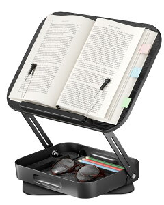 ・【収納ボックス付きの新感覚ブックスタンド】viozonの定番書見台に新たな機能をプラス!ベース部分に22.6×16.8×2.5cmの収納ボックスを搭載し、スマホ、ペン、付箋、メガネなどの小物をすっきり収納。読書や勉強、楽器の練習時に...