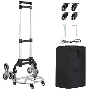 【送料無料】キャリーカート 階段登れる台車 コンパクト折りたたみ式 階段昇降 業務用ハンドトラック 階段用台車 キャスター付き 大型タイヤ 10輪 360度回転 軽量コンパクト 高さ調整できる 固定ロープ付き...