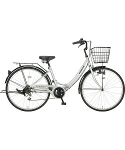 折りたためる26インチ軽快車 6段変速付き、前カゴ、ライト付きで軽快車としてお使いいただき、いざとなったら折りたたみ! ■カラー:ブラック、シルバー ■製品サイズ(約): 組立時/幅53×長さ175×高さ105cm 収
