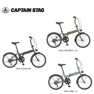 キャプテンスタッグ CAPTAIN STAG 落ち着いたカラーの砲弾型LEDオートライト付き 6段変速折りたたみ自転車。 向かい風や上り坂の時ペダルを漕ぐ力を軽減できる6段ギア...