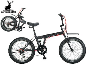キャプテンスタッグ CAPTAIN STAG 折りたたみ自転車 ◆商品情報◆ 極太ブロックタイヤ(20x2.80 幅約70mm)を履いた、圧倒的な存在感の超ワイルドな折りたたみ自転車です。 ハンドルバーはワイルドで乗りやすいBMXタイ...