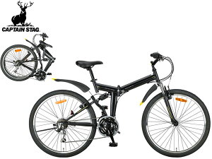 キャプテンスタッグ CAPTAIN STAG 折りたたみ自転車 ◆商品情報◆ 大人の男性にも人気のマウンテンバイク型折りたたみ キャプテンスタッグ得意の折りたたむマウンテンバイク。 前後サスペンション装備...